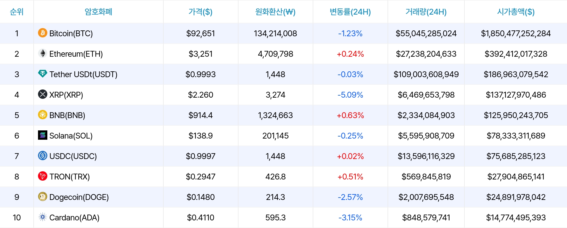 ์ํธํํ ์์ฅ ํผ์กฐ์ธโฆ ๋นํธ์ฝ์ธ 92,567๋ฌ๋ฌ, ์ด๋๋ฆฌ์ 3,249๋ฌ๋ฌ